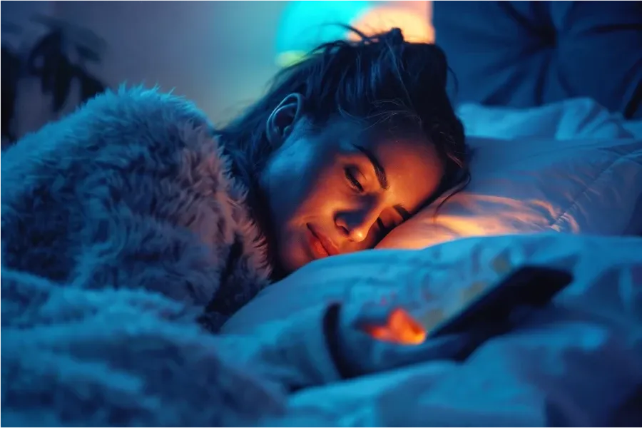 - Omezte čas strávený na mobilu anebo koukání na televizi: Snižte používání elektronických zařízení večer, abyste minimalizovali vliv modrého světla, které může narušit spánek. Tento jednoduchý krok vám může usínání výrazně usnadnit.