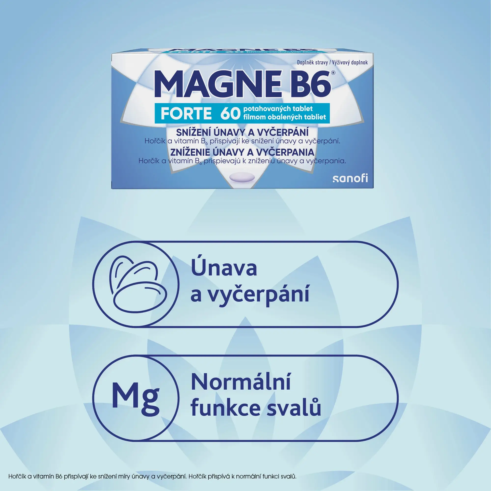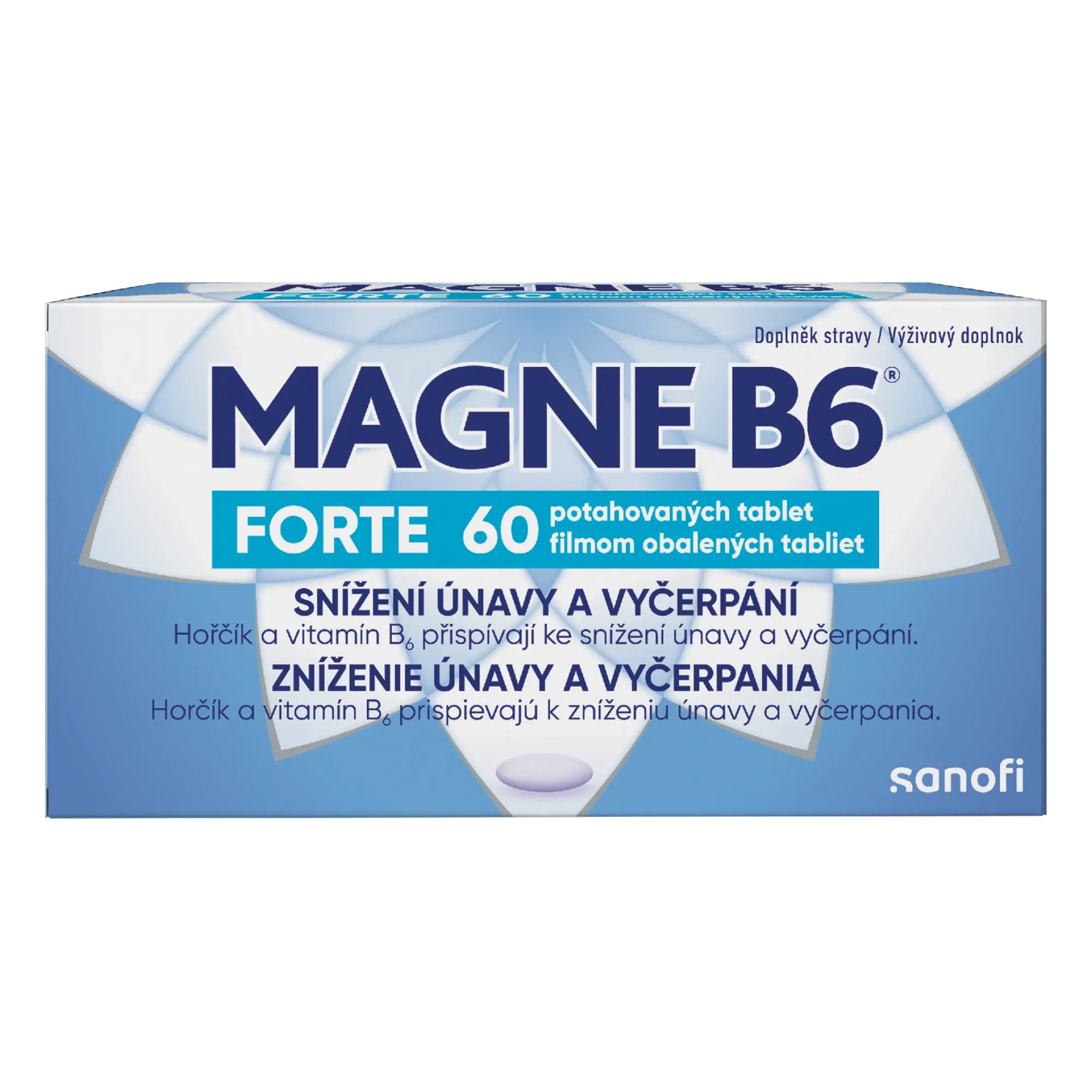 Magne B6® Forte je doplněk stravy s osvědčenou kombinací hořčíku a vitamínu B6 na podporu psychiky, nervů, energie a na snížení únavy a vyčerpání. Obsahuje převážně citrát hořčíku pro účinné doplnění hořčíku v organismu.