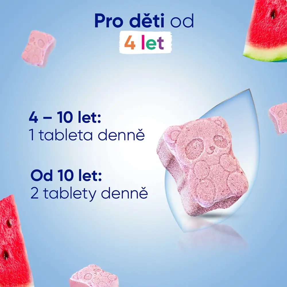Chutné tablety s přírodní melounovou příchutí ve tvaru pandy.