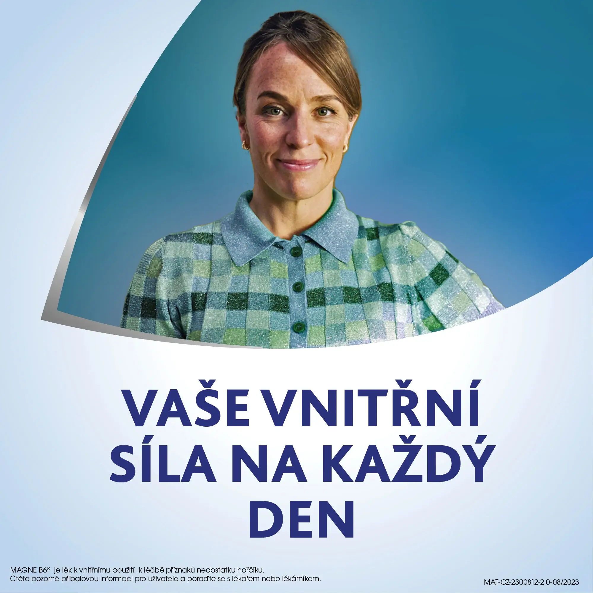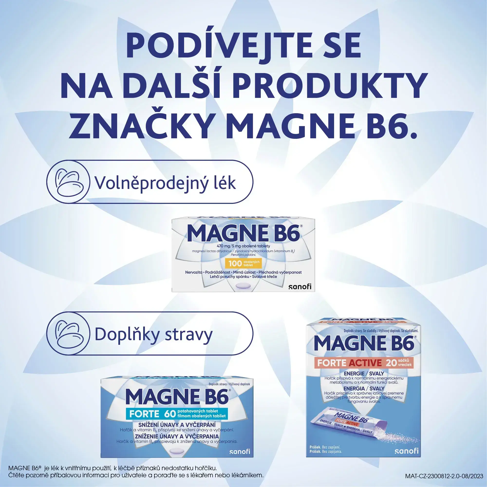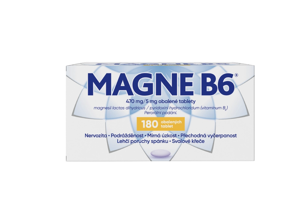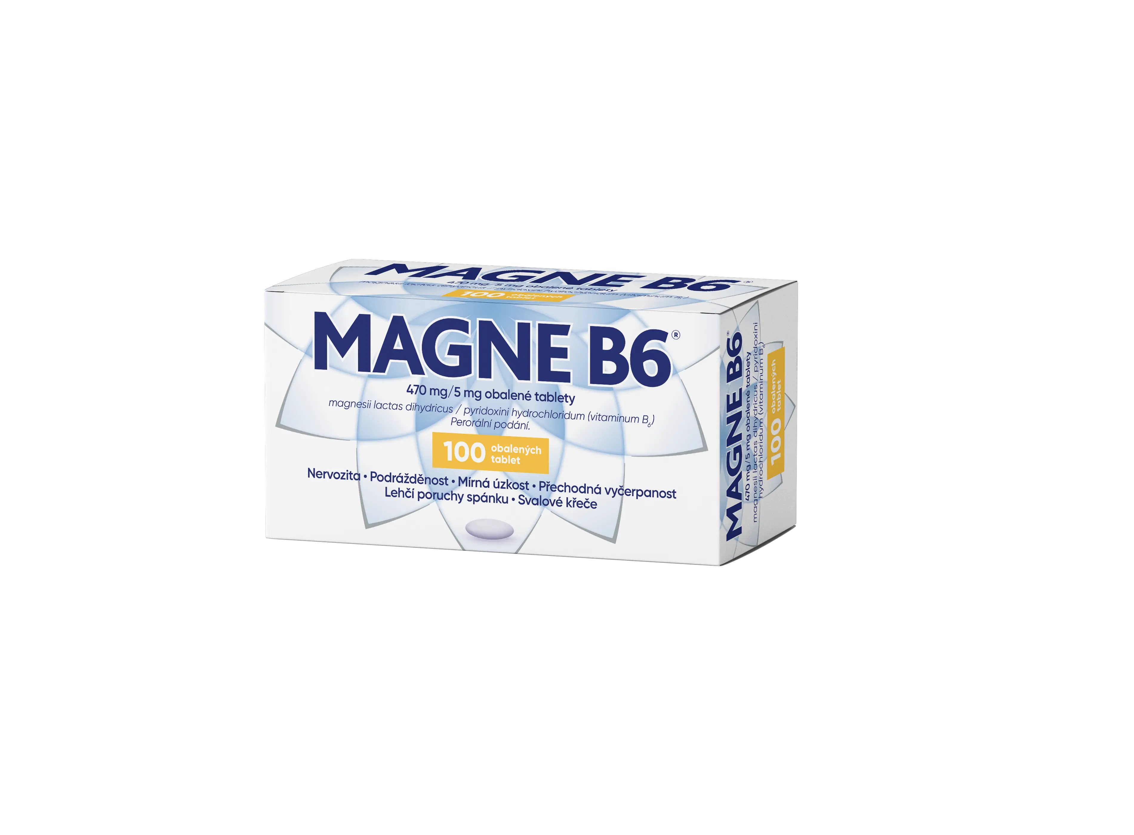 Přípravek Magne B6® obalené tablety obsahuje hořčík v kombinaci s vitamínem B6 a je určen k léčbě nedostatku hořčíku, ke kterému může dojít při různých situacích jako například po intenzivní fyzické námaze, při chronickém stresu nebo při nedostatku spánku.
