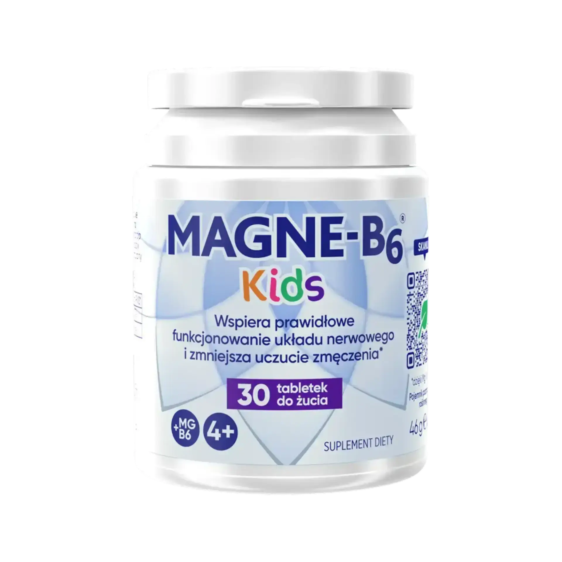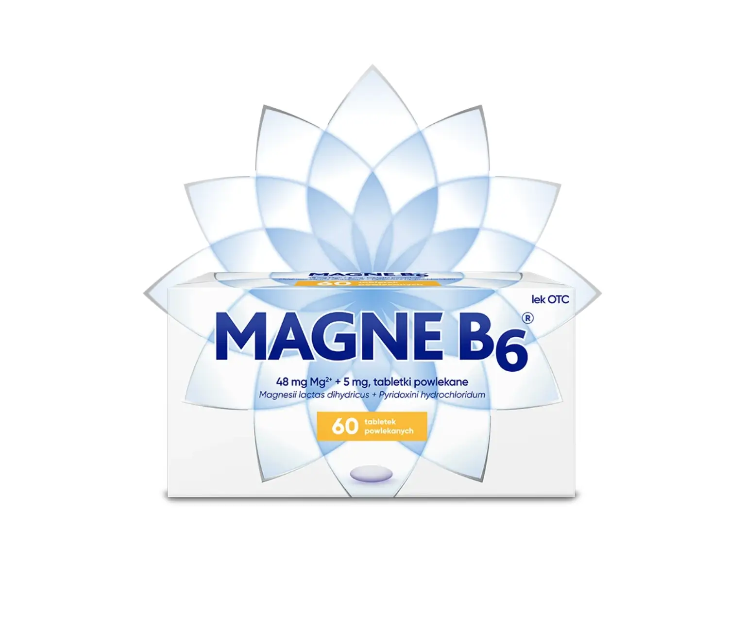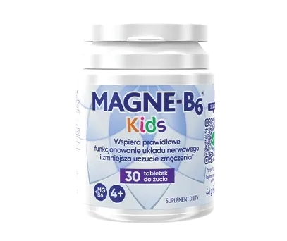 MAGNE B6®, tabletki powlekane, 48 mg jonów magnezu w postaci magnezu mleczanu i 5 mg witaminy B6. Wskazania: niedobór magnezu. Występowanie tych objawów może wskazywać na niedobór magnezu: nerwowość, drażliwość, wahania nastroju, łagodny lęk, niepokój, przejściowe uczucie zmęczenia, ospałość, zaburzenia snu w niewielkim nasileniu; objawy lęku, takie jak kurcze przewodu pokarmowego lub kołatanie serca (bez zaburzeń serca); kurcze mięśni, mrowienie, drganie powiek. Uzupełnienie magnezu może złagodzić te objawy. W przypadku braku poprawy po miesiącu stosowania leku, kontynuowanie leczenia nie jest zalecane.