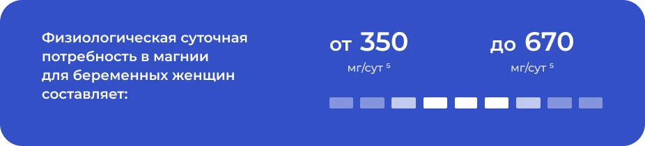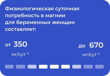 При наличии симптомов и повышенной потребности дефицит магния возможно восполнять на протяжении всего срока беременности12.
